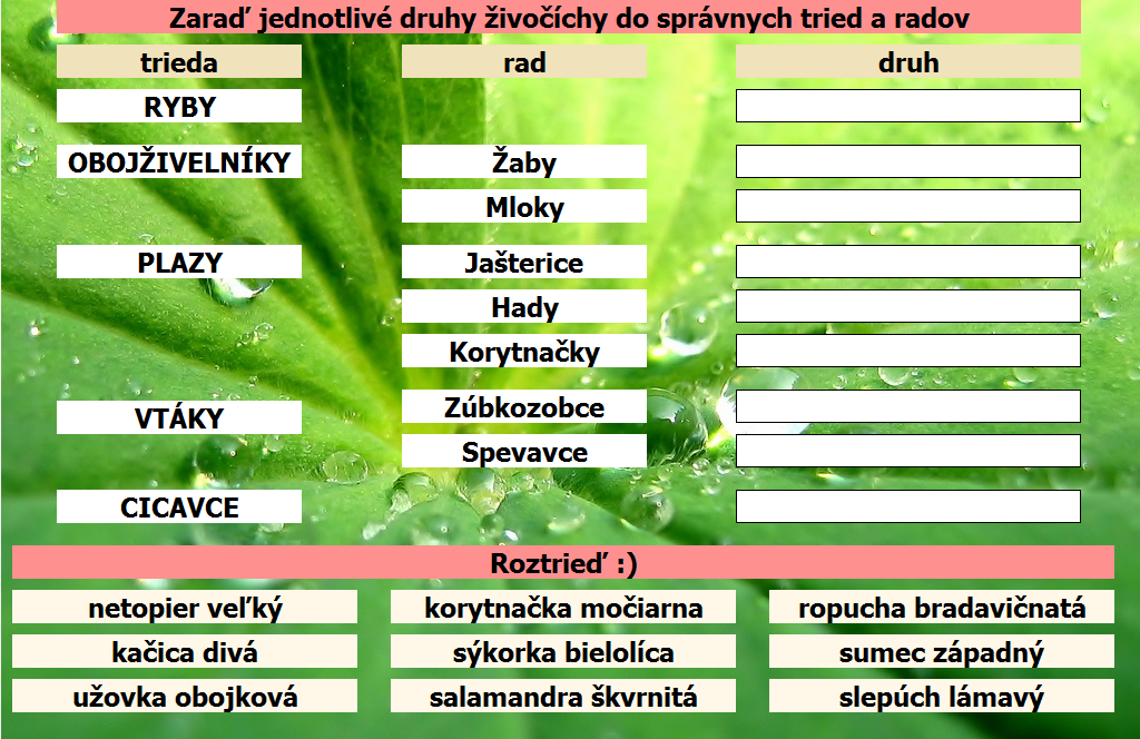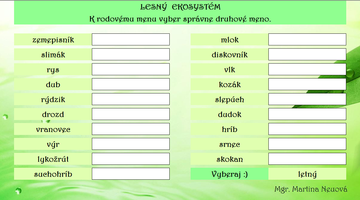 Precvičte si systém živočíchov, rodové a druhové mená lesných organizmov v jenoduchom kartičkovom programe. Programy si nesťahujte, spustite si ich priamo :)